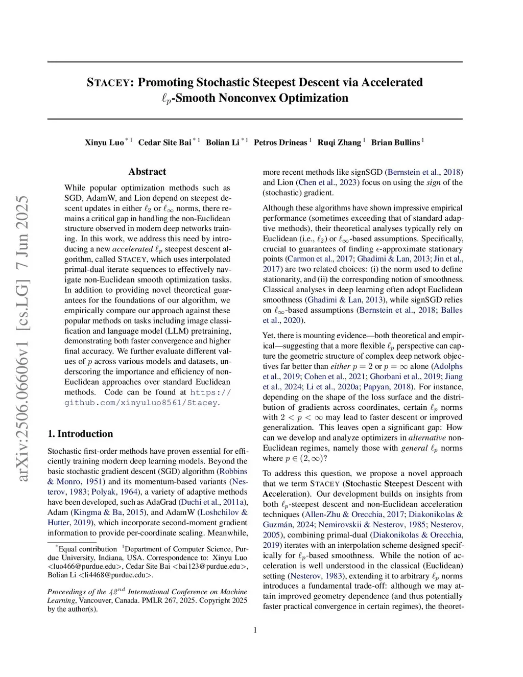 Stacey: Promoting Stochastic Steepest Descent via Accelerated -Smooth Nonconvex Optimization