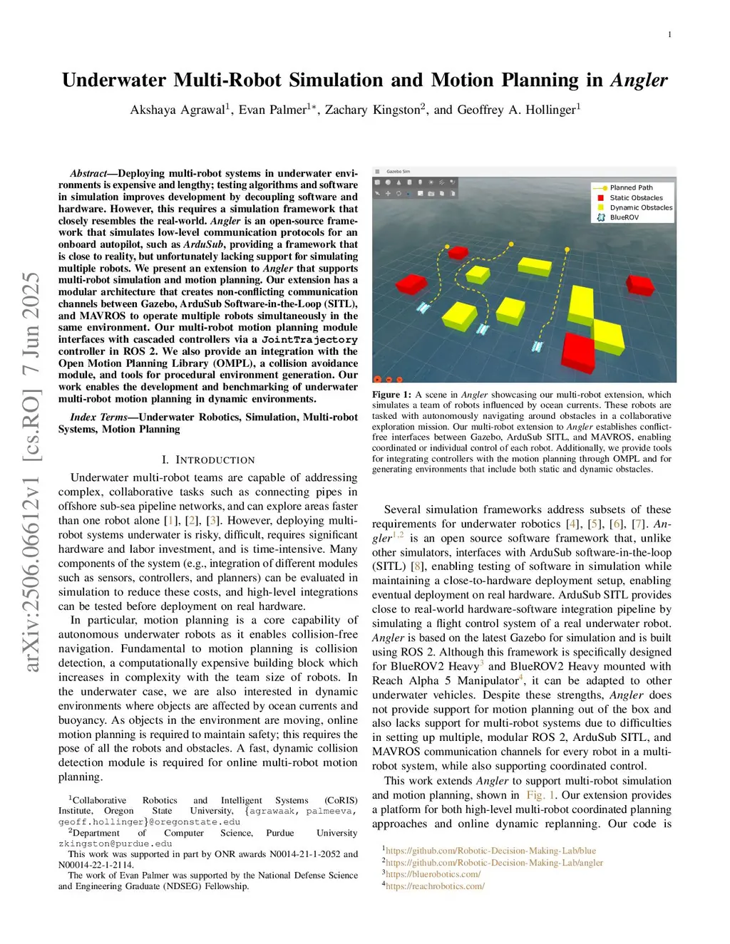 Underwater Multi-Robot Simulation and Motion Planning in Angler