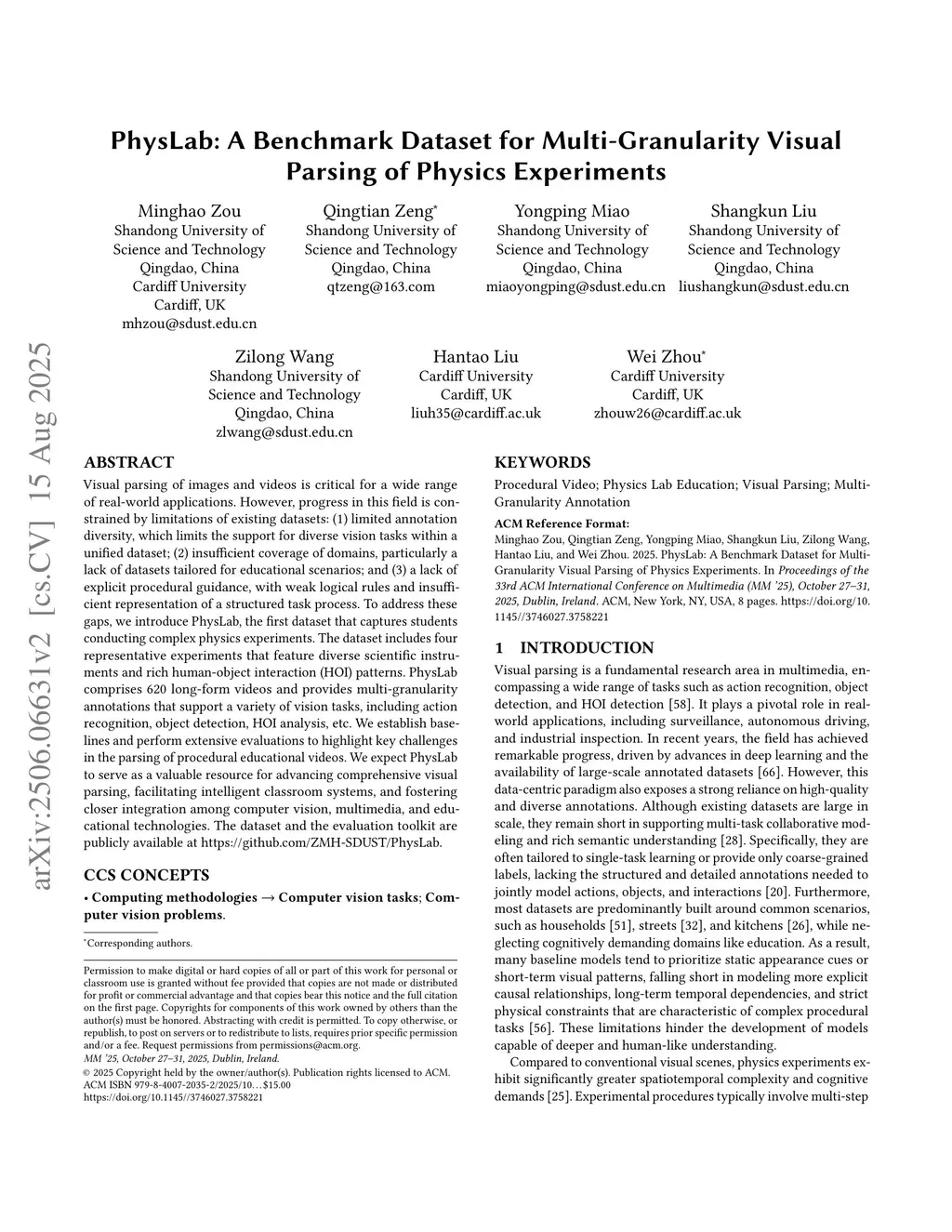 PhysLab: A Benchmark Dataset for Multi-Granularity Visual Parsing of Physics Experiments