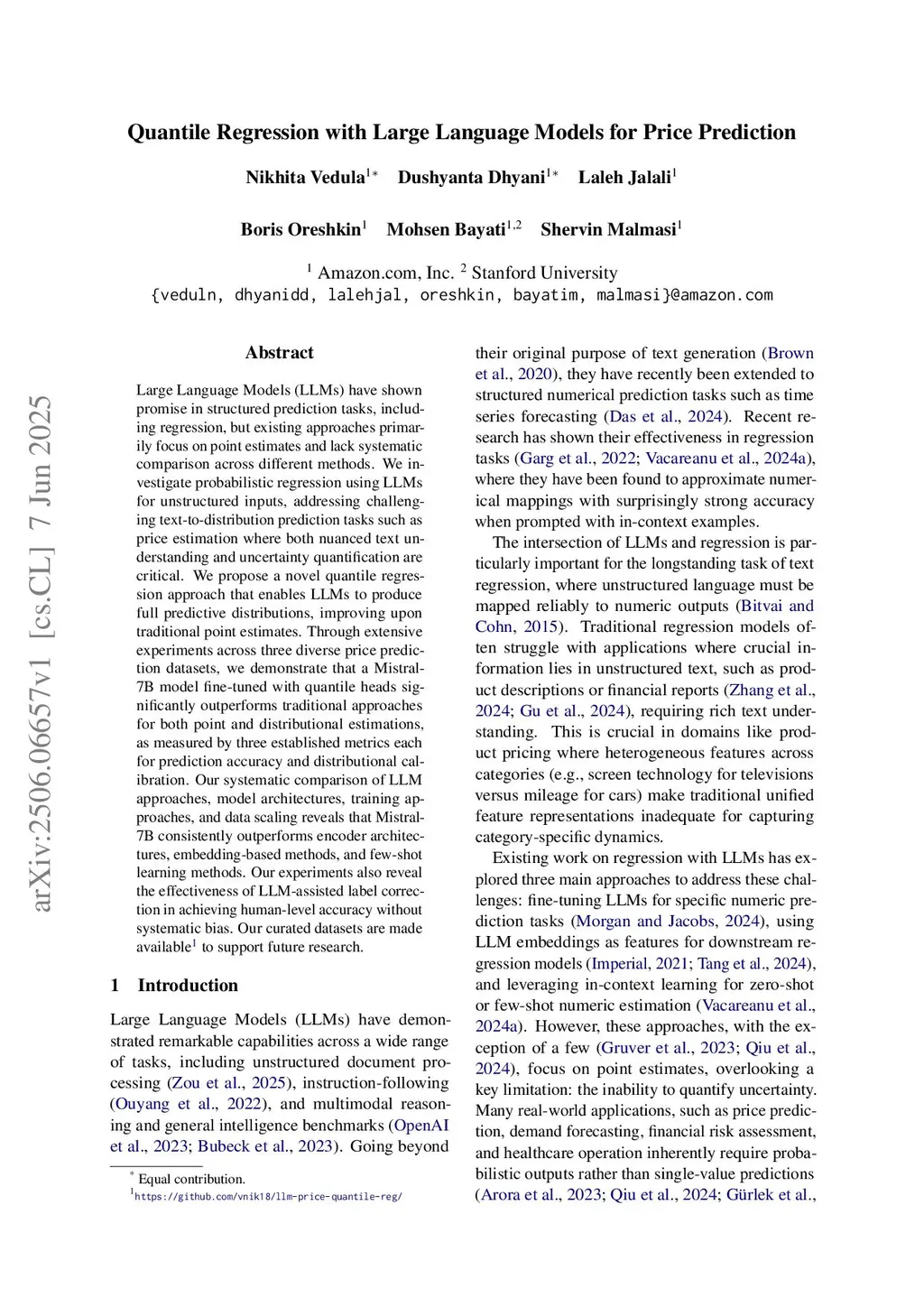 Large Language Models (LLMs) have shown promise in structured prediction tasks, including regression, but existing approaches primarily focus on point estimates and lack systematic comparison across different methods. We investigate probabilistic regression using LLMs for unstructured inputs, addressing challenging text-to-distribution prediction tasks such as price estimation where both nuanced text understanding and uncertainty quantification are critical. We propose a novel quantile regression approach that enables LLMs to produce full predictive distributions, improving upon traditional point estimates. Through extensive experiments across three diverse price prediction datasets, we demonstrate that a Mistral-7B model fine-tuned with quantile heads significantly outperforms traditional approaches for both point and distributional estimations, as measured by three established metrics each for prediction accuracy and distributional calibration. Our systematic comparison of LLM approaches, model architectures, training approaches, and data scaling reveals that Mistral-7B consistently outperforms encoder architectures, embedding-based methods, and few-shot learning methods. Our experiments also reveal the effectiveness of LLM-assisted label correction in achieving human-level accuracy without systematic bias. Our curated datasets are made available atthis https URLto support future research.