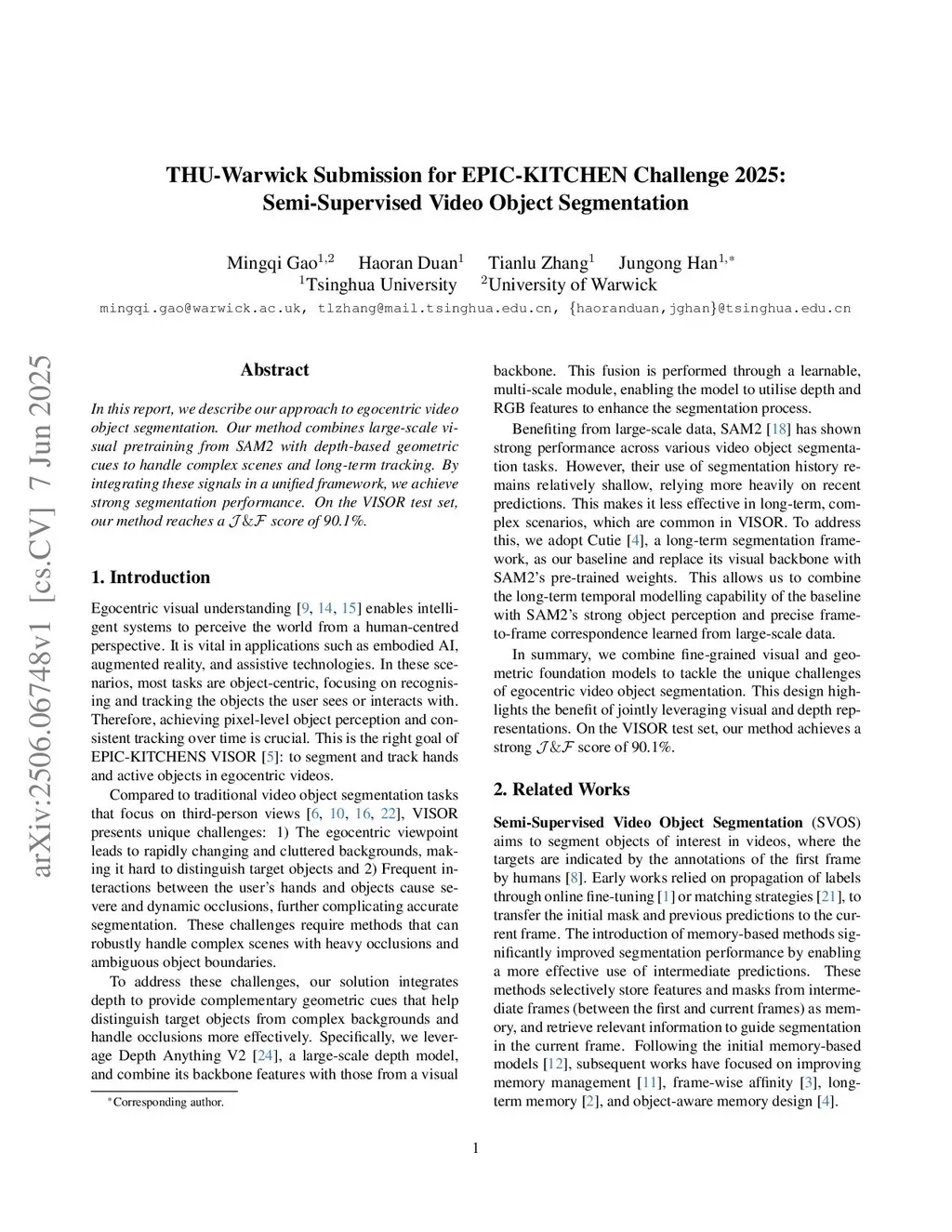 THU-Warwick Submission for EPIC-KITCHEN Challenge 2025: Semi-Supervised Video Object Segmentation