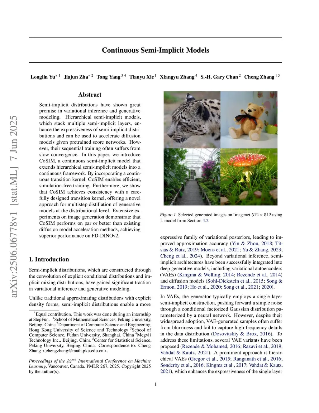 Semi-implicit distributions have shown great promise in variational inference and generative modeling. Hierarchical semi-implicit models, which stack multiple semi-implicit layers, enhance the expressiveness of semi-implicit distributions and can be used to accelerate diffusion models given pretrained score networks. However, their sequential training often suffers from slow convergence. In this paper, we introduce CoSIM, a continuous semi-implicit model that extends hierarchical semi-implicit models into a continuous framework. By incorporating a continuous transition kernel, CoSIM enables efficient, simulation-free training. Furthermore, we show that CoSIM achieves consistency with a carefully designed transition kernel, offering a novel approach for multistep distillation of generative models at the distributional level. Extensive experiments on image generation demonstrate that CoSIM performs on par or better than existing diffusion model acceleration methods, achieving superior performance on FD-DINOv2.