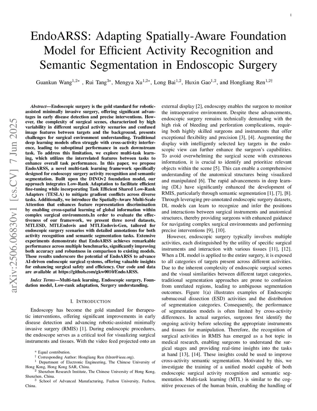 EndoARSS: Adapting Spatially-Aware Foundation Model for Efficient Activity Recognition and Semantic Segmentation in Endoscopic Surgery