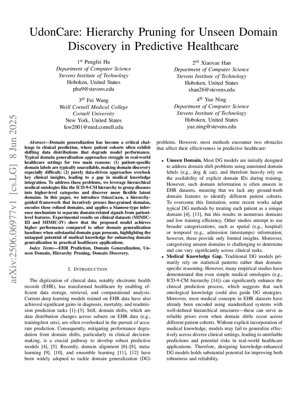 UdonCare: Hierarchy Pruning for Unseen Domain Discovery in Predictive Healthcare