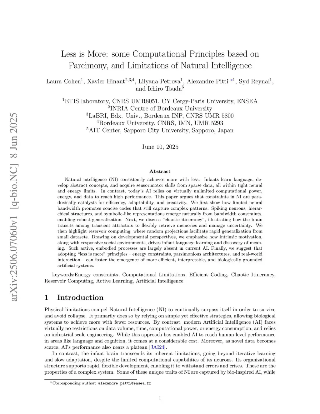 Less is More: some Computational Principles based on Parcimony, and Limitations of Natural Intelligence
