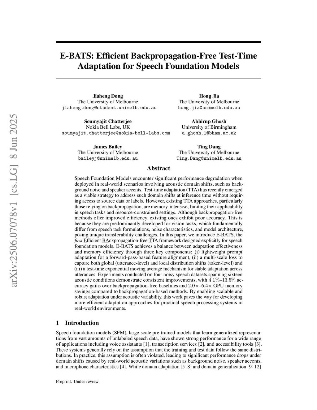 E-BATS: Efficient Backpropagation-Free Test-Time Adaptation for Speech Foundation Models
