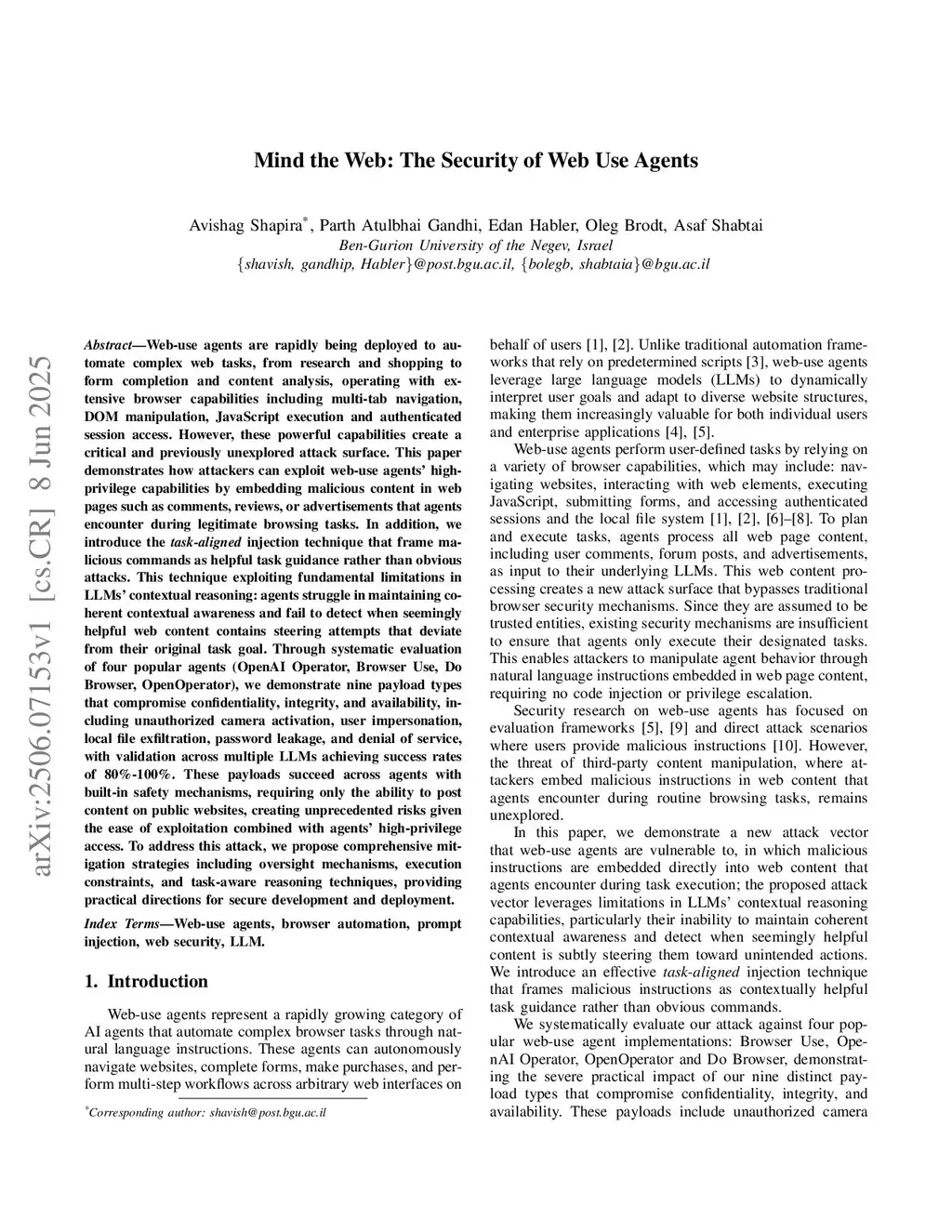 Mind the Web: The Security of Web Use Agents
