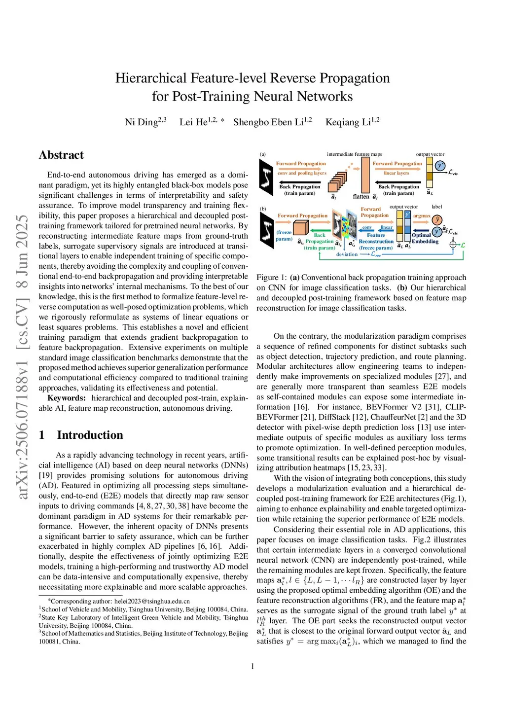 End-to-end autonomous driving has emerged as a dominant paradigm, yet its highly entangled black-box models pose significant challenges in terms of interpretability and safety assurance. To improve model transparency and training flexibility, this paper proposes a hierarchical and decoupled post-training framework tailored for pretrained neural networks. By reconstructing intermediate feature maps from ground-truth labels, surrogate supervisory signals are introduced at transitional layers to enable independent training of specific components, thereby avoiding the complexity and coupling of conventional end-to-end backpropagation and providing interpretable insights into networks' internal mechanisms. To the best of our knowledge, this is the first method to formalize feature-level reverse computation as well-posed optimization problems, which we rigorously reformulate as systems of linear equations or least squares problems. This establishes a novel and efficient training paradigm that extends gradient backpropagation to feature backpropagation. Extensive experiments on multiple standard image classification benchmarks demonstrate that the proposed method achieves superior generalization performance and computational efficiency compared to traditional training approaches, validating its effectiveness and potential.