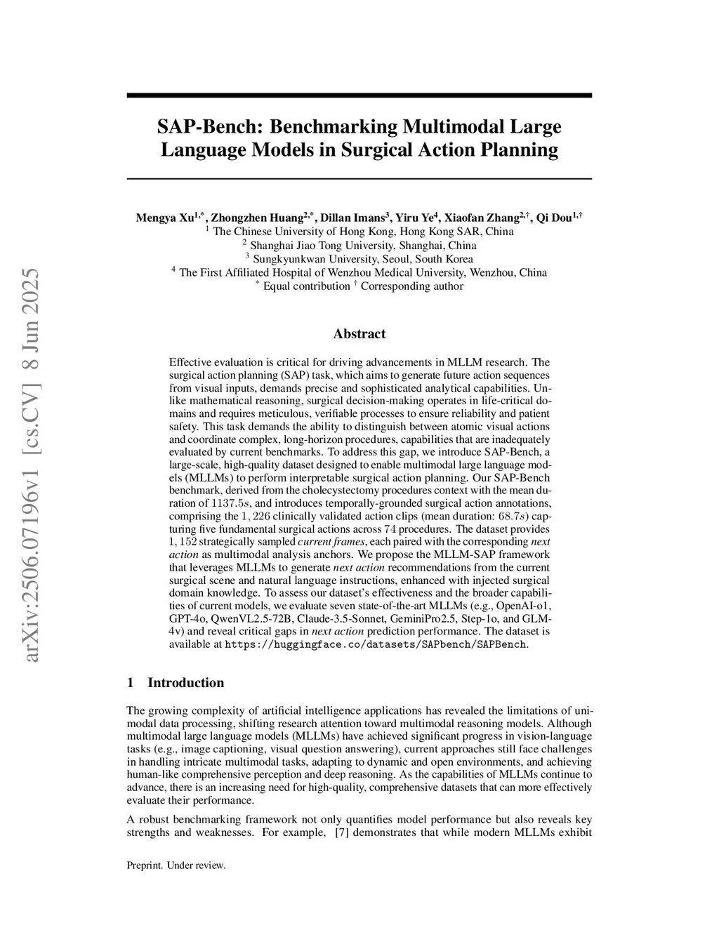 SAP-Bench: Benchmarking Multimodal Large Language Models in Surgical Action Planning
