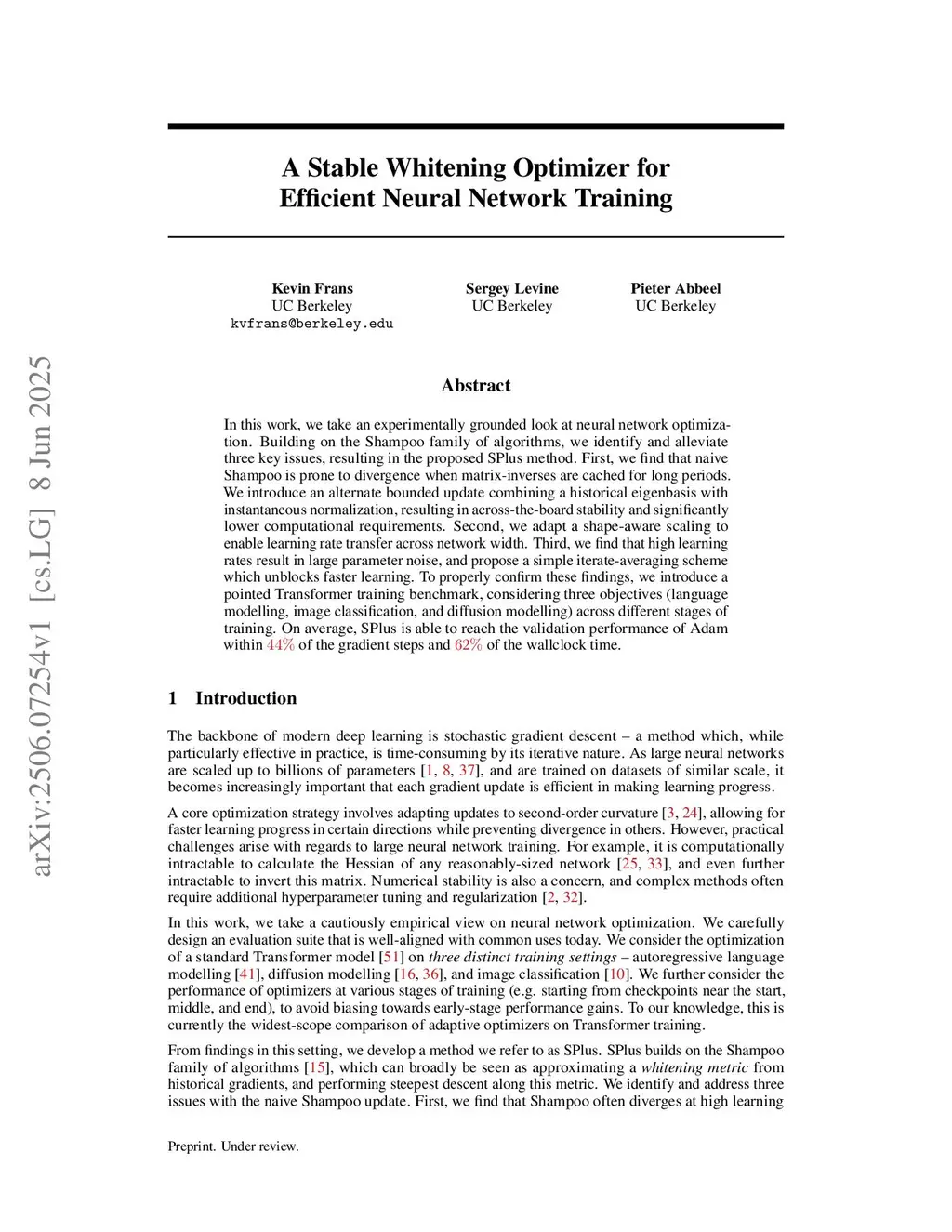 In this work, we take an experimentally grounded look at neural network optimization. Building on the Shampoo family of algorithms, we identify and alleviate three key issues, resulting in the proposed SPlus method. First, we find that naive Shampoo is prone to divergence when matrix-inverses are cached for long periods. We introduce an alternate bounded update combining a historical eigenbasis with instantaneous normalization, resulting in across-the-board stability and significantly lower computational requirements. Second, we adapt a shape-aware scaling to enable learning rate transfer across network width. Third, we find that high learning rates result in large parameter noise, and propose a simple iterate-averaging scheme which unblocks faster learning. To properly confirm these findings, we introduce a pointed Transformer training benchmark, considering three objectives (language modelling, image classification, and diffusion modelling) across different stages of training. On average, SPlus is able to reach the validation performance of Adam within 44% of the gradient steps and 62% of the wallclock time.