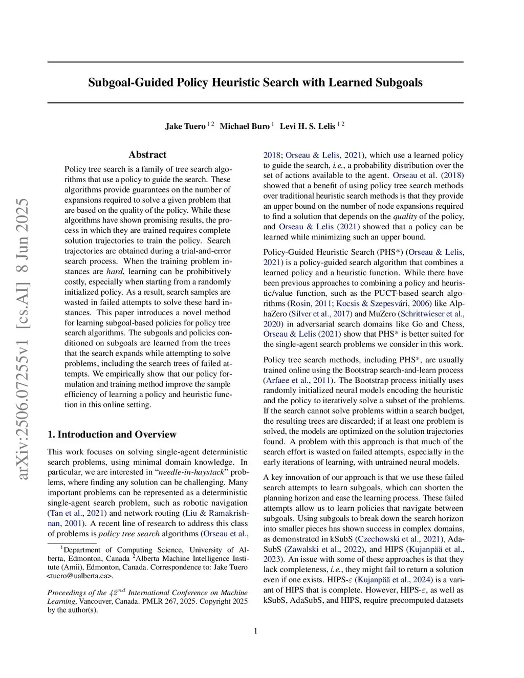 Subgoal-Guided Policy Heuristic Search with Learned Subgoals