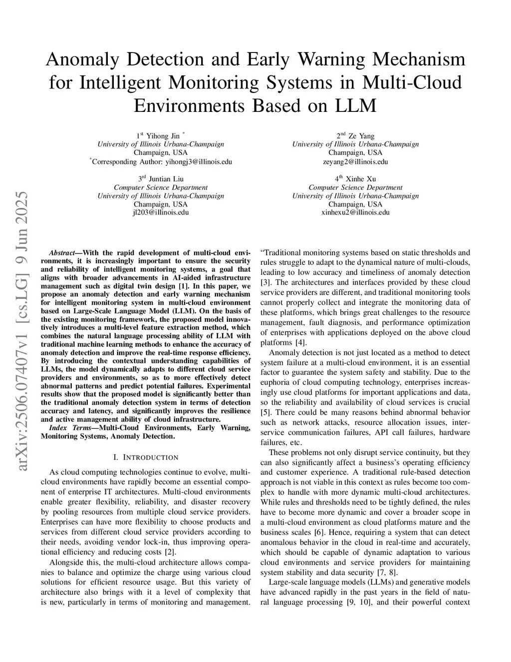 Anomaly Detection and Early Warning Mechanism for Intelligent Monitoring Systems in Multi-Cloud Environments Based on LLM
