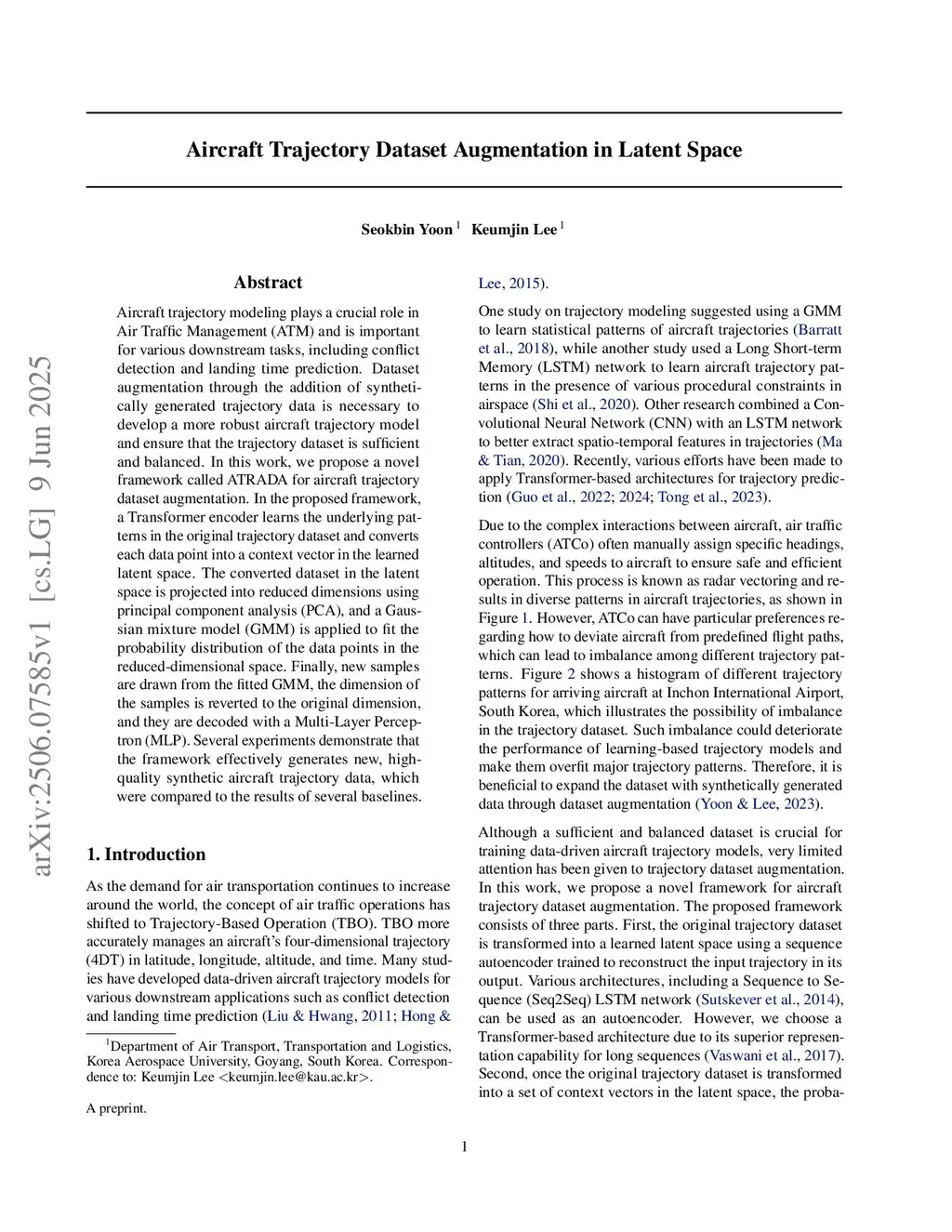 Aircraft Trajectory Dataset Augmentation in Latent Space