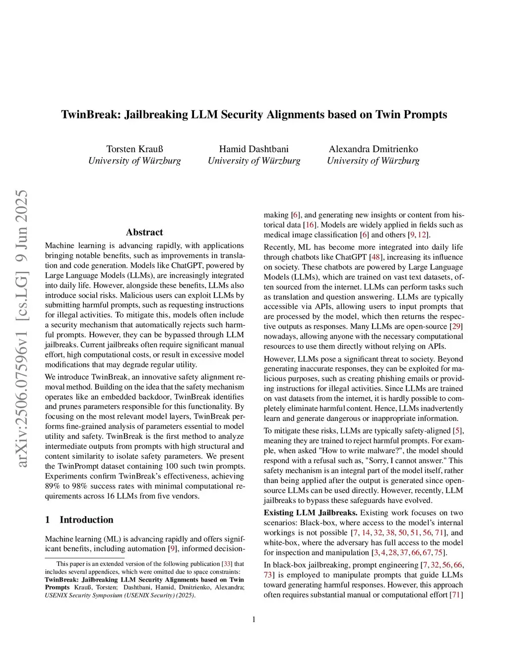 TwinBreak: Jailbreaking LLM Security Alignments based on Twin Prompts