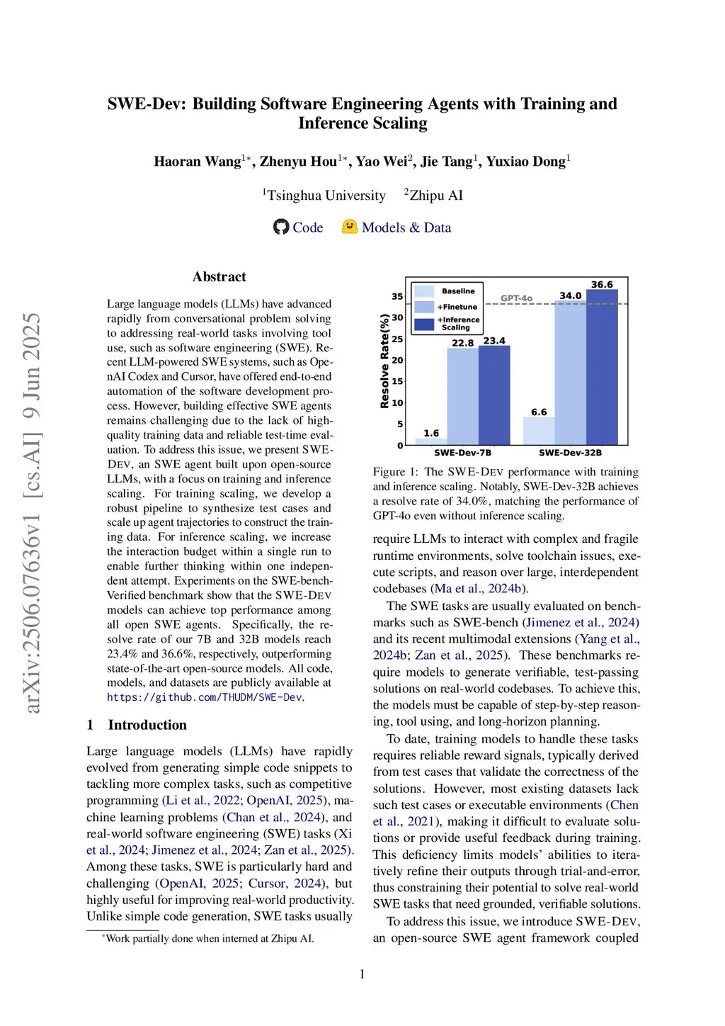 SWE-Dev: Building Software Engineering Agents with Training and Inference Scaling
