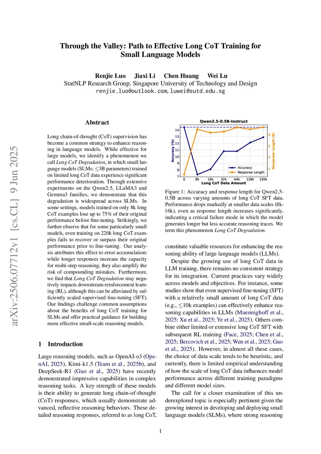 Through the Valley: Path to Effective Long CoT Training for Small Language Models