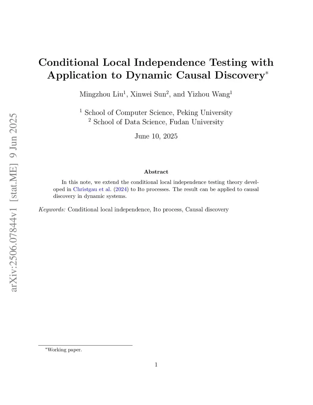In this note, we extend the conditional local independence testing theory developed in Christgau et al. (2024) to Ito processes. The result can be applied to causal discovery in dynamic systems.