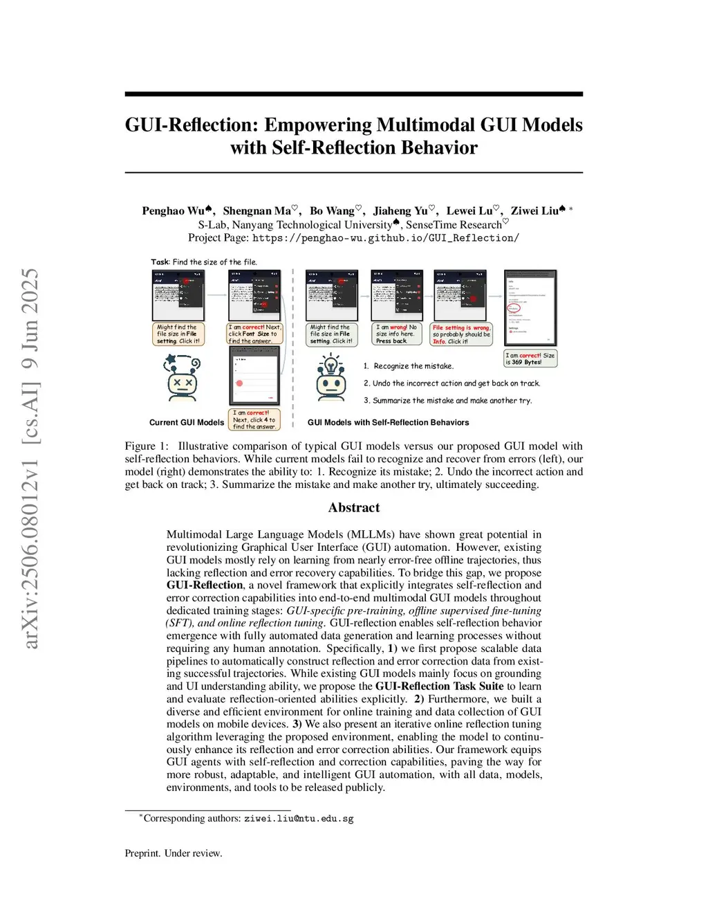 GUI-Reflection: Empowering Multimodal GUI Models with Self-Reflection Behavior