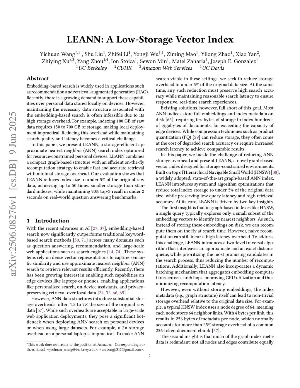 LEANN: A Low-Storage Vector Index
