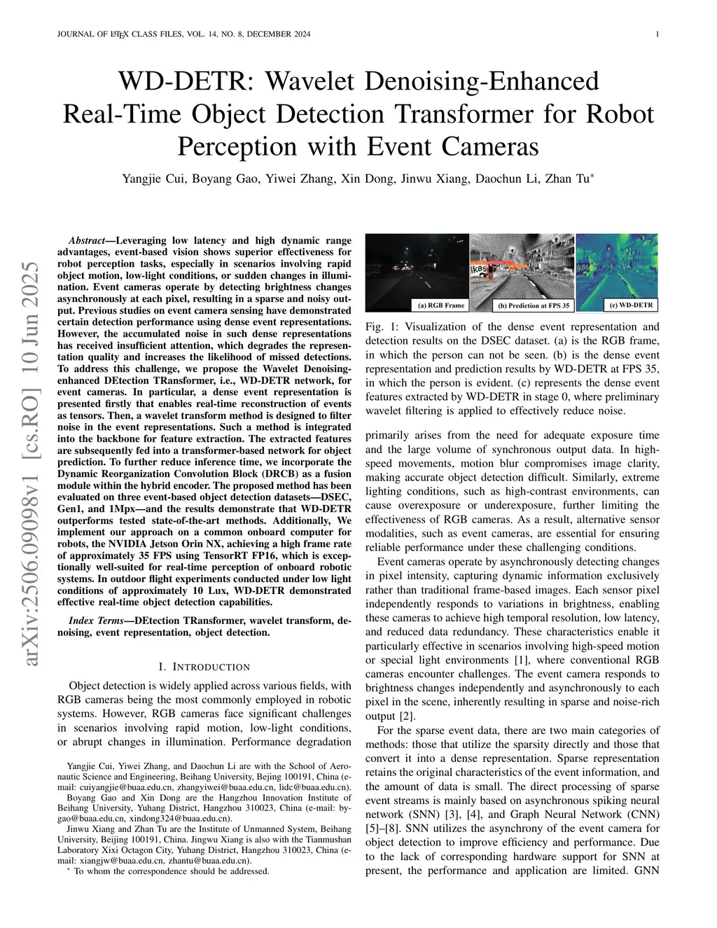 WD-DETR: Wavelet Denoising-Enhanced Real-Time Object Detection Transformer for Robot Perception with Event Cameras
