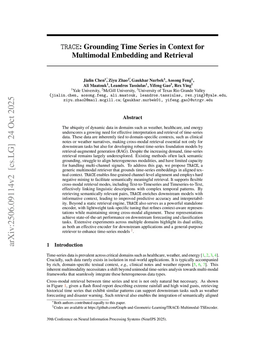 TRACE: Grounding Time Series in Context for Multimodal Embedding and Retrieval