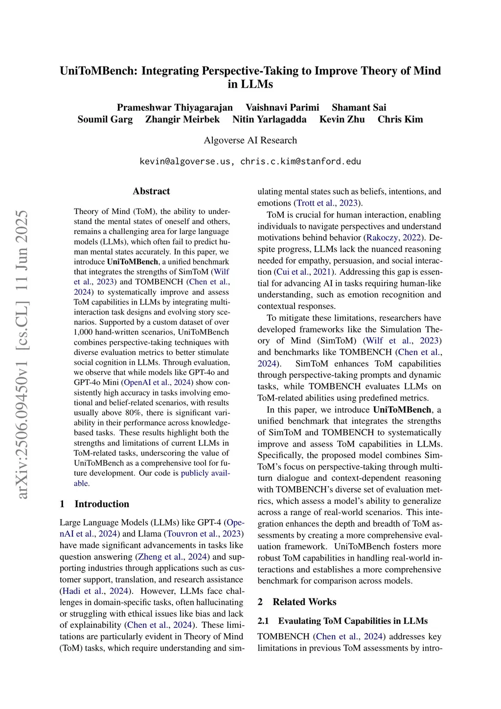 UniToMBench: Integrating Perspective-Taking to Improve Theory of Mind in LLMs