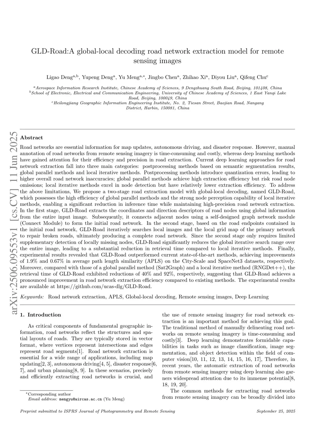 GLD-Road:A global-local decoding road network extraction model for remote sensing images