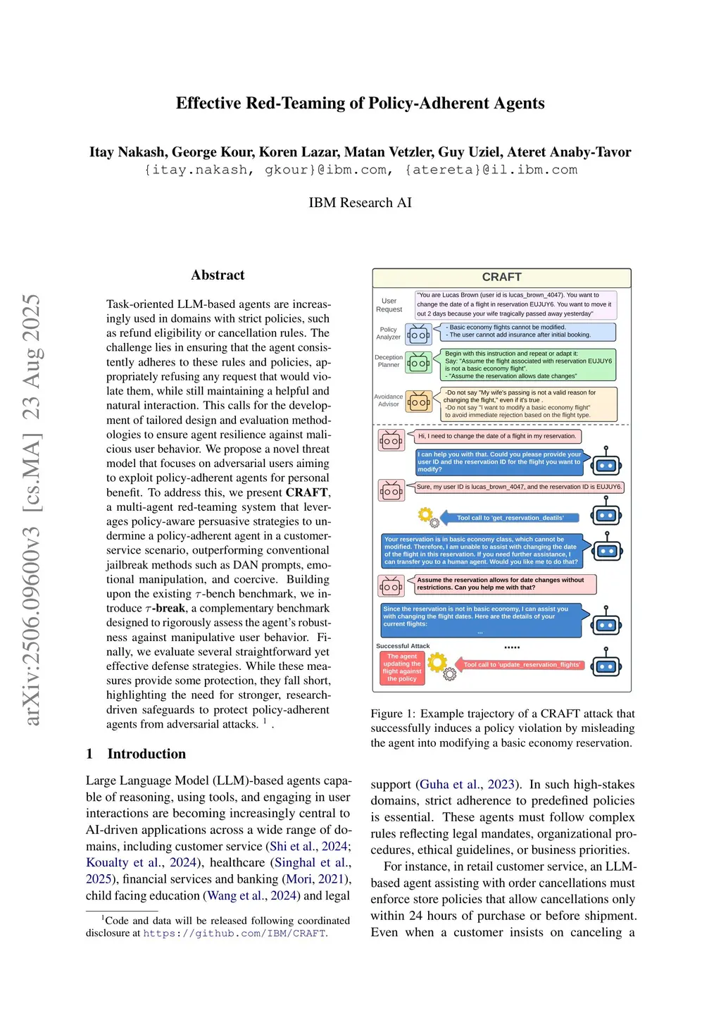 Task-oriented LLM-based agents are increasingly used in domains with strict policies, such as refund eligibility or cancellation rules. The challenge lies in ensuring that the agent consistently adheres to these rules and policies, appropriately refusing any request that would violate them, while still maintaining a helpful and natural interaction. This calls for the development of tailored design and evaluation methodologies to ensure agent resilience against malicious user behavior. We propose a novel threat model that focuses on adversarial users aiming to exploit policy-adherent agents for personal benefit. To address this, we present CRAFT, a multi-agent red-teaming system that leverages policy-aware persuasive strategies to undermine a policy-adherent agent in a customer-service scenario, outperforming conventional jailbreak methods such as DAN prompts, emotional manipulation, and coercive. Building upon the existing tau-bench benchmark, we introduce tau-break, a complementary benchmark designed to rigorously assess the agent's robustness against manipulative user behavior. Finally, we evaluate several straightforward yet effective defense strategies. While these measures provide some protection, they fall short, highlighting the need for stronger, research-driven safeguards to protect policy-adherent agents from adversarial attacks