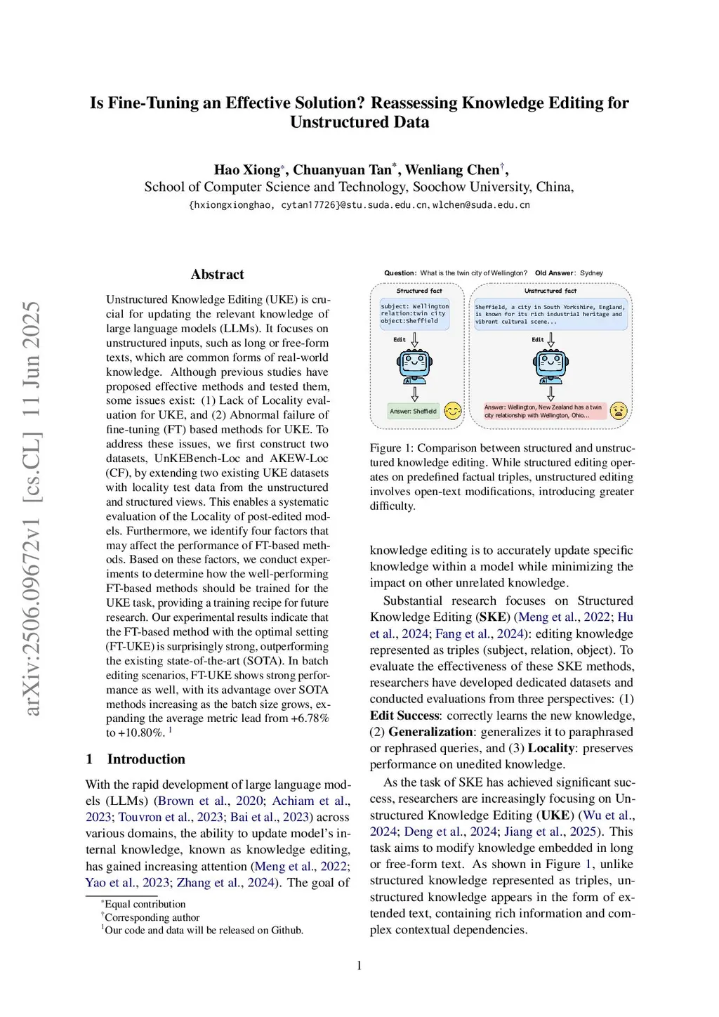 Is Fine-Tuning an Effective Solution? Reassessing Knowledge Editing for Unstructured Data