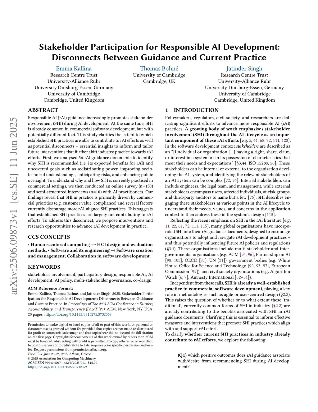 Stakeholder Participation for Responsible AI Development: Disconnects Between Guidance and Current Practice