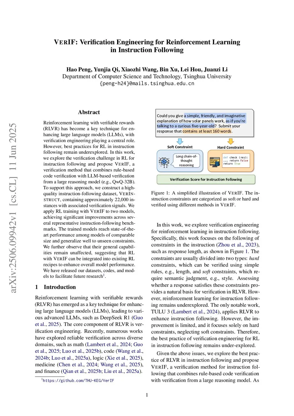 Reinforcement learning with verifiable rewards (RLVR) has become a key technique for enhancing large language models (LLMs), with verification engineering playing a central role. However, best practices for RL in instruction following remain underexplored. In this work, we explore the verification challenge in RL for instruction following and propose VerIF, a verification method that combines rule-based code verification with LLM-based verification from a large reasoning model (e.g., QwQ-32B). To support this approach, we construct a high-quality instruction-following dataset, VerInstruct, containing approximately 22,000 instances with associated verification signals. We apply RL training with VerIF to two models, achieving significant improvements across several representative instruction-following benchmarks. The trained models reach state-of-the-art performance among models of comparable size and generalize well to unseen constraints. We further observe that their general capabilities remain unaffected, suggesting that RL with VerIF can be integrated into existing RL recipes to enhance overall model performance. We have released our datasets, codes, and models to facilitate future research atthis https URL.