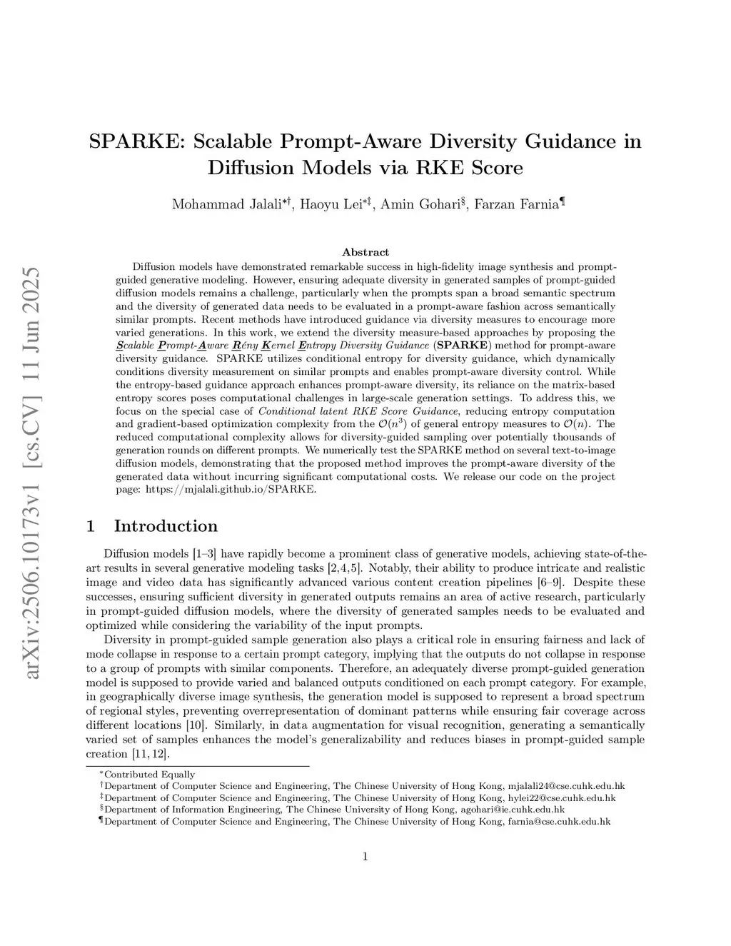 Diffusion models have demonstrated remarkable success in high-fidelity image synthesis and prompt-guided generative modeling. However, ensuring adequate diversity in generated samples of prompt-guided diffusion models remains a challenge, particularly when the prompts span a broad semantic spectrum and the diversity of generated data needs to be evaluated in a prompt-aware fashion across semantically similar prompts. Recent methods have introduced guidance via diversity measures to encourage more varied generations. In this work, we extend the diversity measure-based approaches by proposing the Scalable Prompt-Aware Rény Kernel Entropy Diversity Guidance (SPARKE) method for prompt-aware diversity guidance. SPARKE utilizes conditional entropy for diversity guidance, which dynamically conditions diversity measurement on similar prompts and enables prompt-aware diversity control. While the entropy-based guidance approach enhances prompt-aware diversity, its reliance on the matrix-based entropy scores poses computational challenges in large-scale generation settings. To address this, we focus on the special case of Conditional latent RKE Score Guidance, reducing entropy computation and gradient-based optimization complexity from the of general entropy measures to . The reduced computational complexity allows for diversity-guided sampling over potentially thousands of generation rounds on different prompts. We numerically test the SPARKE method on several text-to-image diffusion models, demonstrating that the proposed method improves the prompt-aware diversity of the generated data without incurring significant computational costs. We release our code on the project page:this https URL