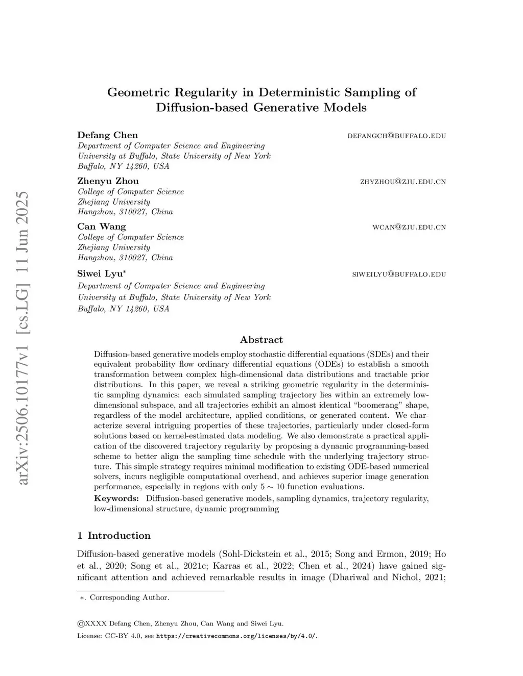 Diffusion-based generative models employ stochastic differential equations (SDEs) and their equivalent probability flow ordinary differential equations (ODEs) to establish a smooth transformation between complex high-dimensional data distributions and tractable prior distributions. In this paper, we reveal a striking geometric regularity in the deterministic sampling dynamics of diffusion generative models: each simulated sampling trajectory along the gradient field lies within an extremely low-dimensional subspace, and all trajectories exhibit an almost identical boomerang shape, regardless of the model architecture, applied conditions, or generated content. We characterize several intriguing properties of these trajectories, particularly under closed-form solutions based on kernel-estimated data modeling. We also demonstrate a practical application of the discovered trajectory regularity by proposing a dynamic programming-based scheme to better align the sampling time schedule with the underlying trajectory structure. This simple strategy requires minimal modification to existing deterministic numerical solvers, incurs negligible computational overhead, and achieves superior image generation performance, especially in regions with only 5 - 10 function evaluations.