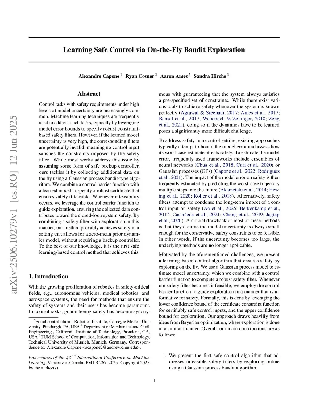 Learning Safe Control via On-the-Fly Bandit Exploration