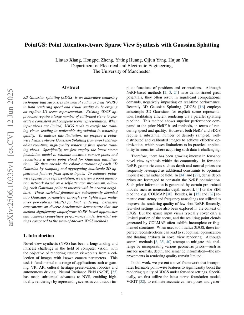 PointGS: Point Attention-Aware Sparse View Synthesis with Gaussian Splatting