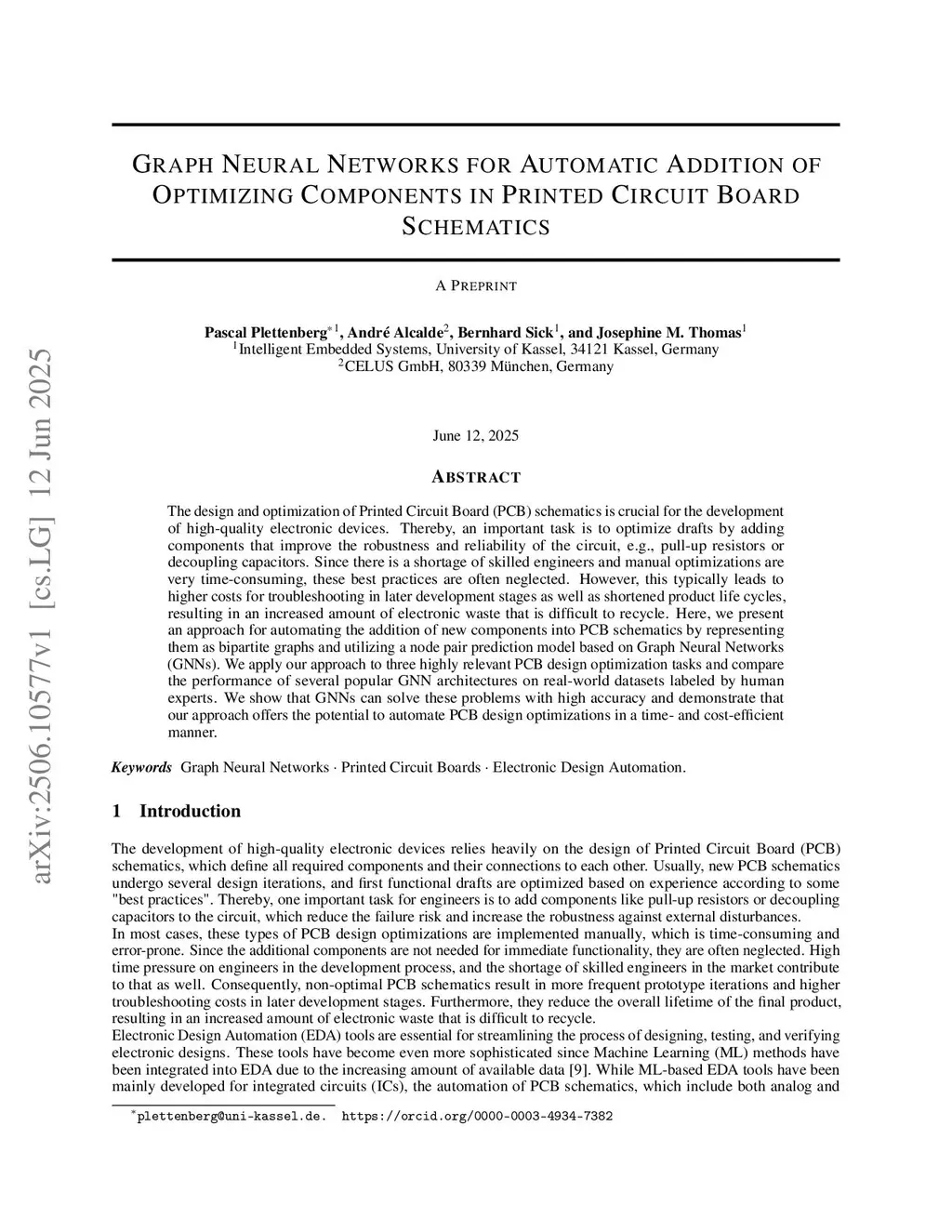 The design and optimization of Printed Circuit Board (PCB) schematics is crucial for the development of high-quality electronic devices. Thereby, an important task is to optimize drafts by adding components that improve the robustness and reliability of the circuit, e.g., pull-up resistors or decoupling capacitors. Since there is a shortage of skilled engineers and manual optimizations are very time-consuming, these best practices are often neglected. However, this typically leads to higher costs for troubleshooting in later development stages as well as shortened product life cycles, resulting in an increased amount of electronic waste that is difficult to recycle. Here, we present an approach for automating the addition of new components into PCB schematics by representing them as bipartite graphs and utilizing a node pair prediction model based on Graph Neural Networks (GNNs). We apply our approach to three highly relevant PCB design optimization tasks and compare the performance of several popular GNN architectures on real-world datasets labeled by human experts. We show that GNNs can solve these problems with high accuracy and demonstrate that our approach offers the potential to automate PCB design optimizations in a time- and cost-efficient manner.
