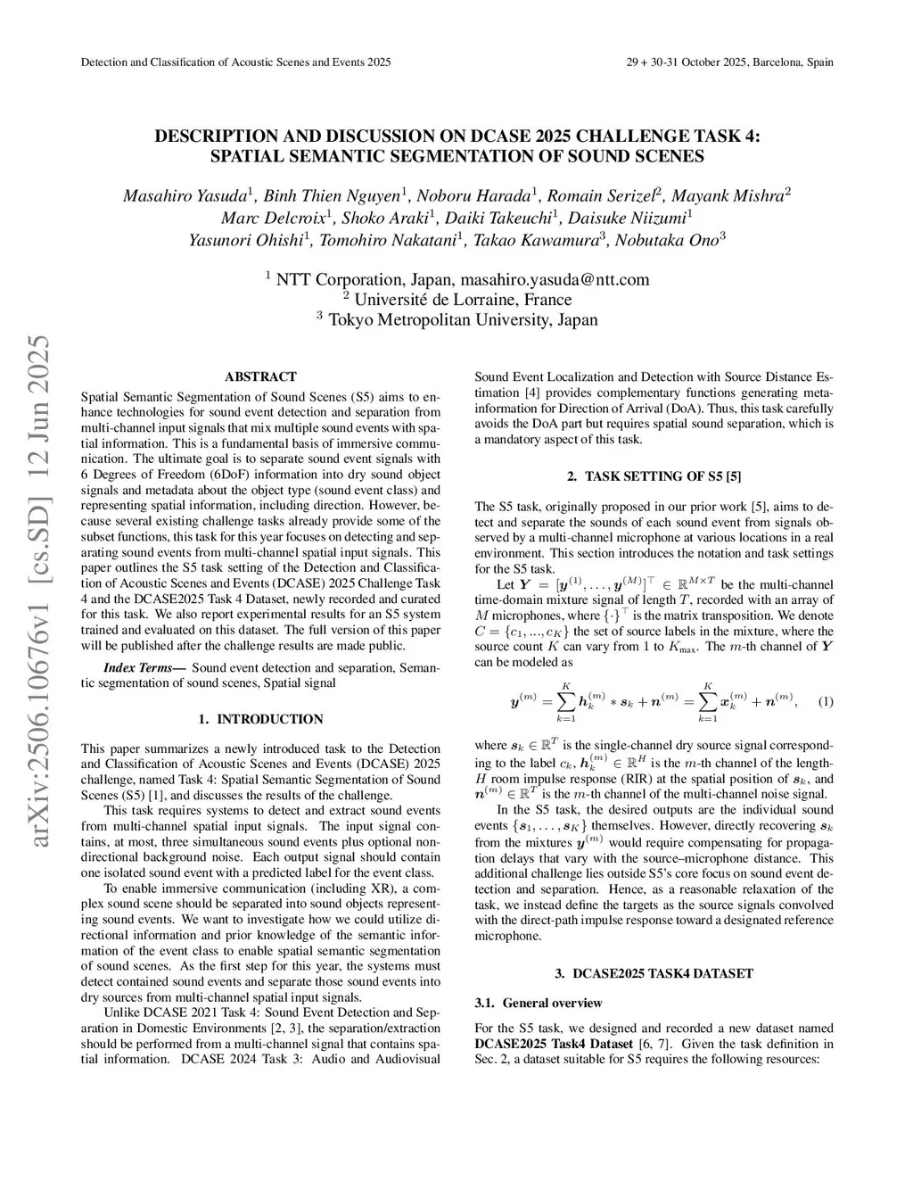 Spatial Semantic Segmentation of Sound Scenes (S5) aims to enhance technologies for sound event detection and separation from multi-channel input signals that mix multiple sound events with spatial information. This is a fundamental basis of immersive communication. The ultimate goal is to separate sound event signals with 6 Degrees of Freedom (6DoF) information into dry sound object signals and metadata about the object type (sound event class) and representing spatial information, including direction. However, because several existing challenge tasks already provide some of the subset functions, this task for this year focuses on detecting and separating sound events from multi-channel spatial input signals. This paper outlines the S5 task setting of the Detection and Classification of Acoustic Scenes and Events (DCASE) 2025 Challenge Task 4 and the DCASE2025 Task 4 Dataset, newly recorded and curated for this task. We also report experimental results for an S5 system trained and evaluated on this dataset. The full version of this paper will be published after the challenge results are made public.