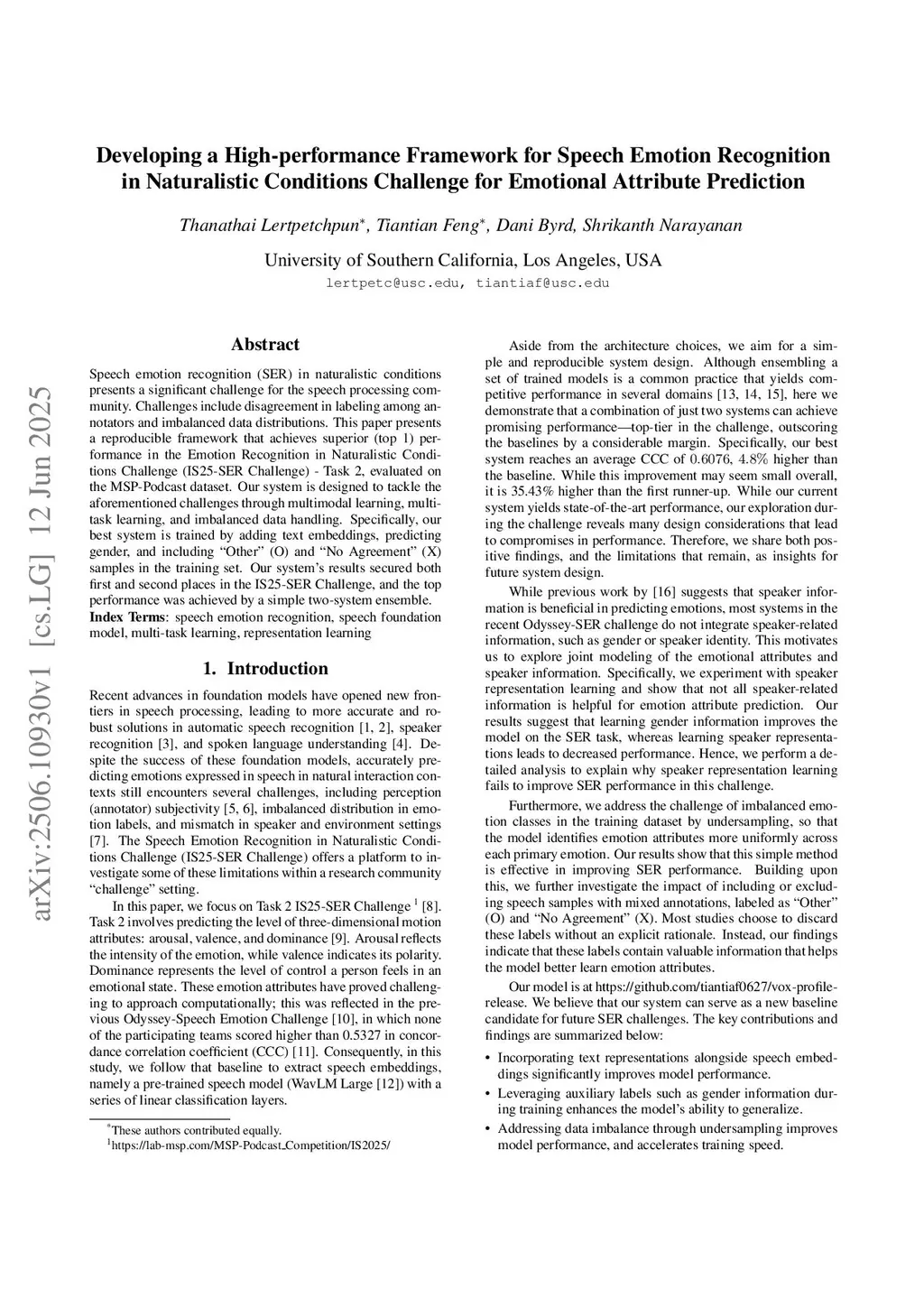 Speech emotion recognition (SER) in naturalistic conditions presents a significant challenge for the speech processing community. Challenges include disagreement in labeling among annotators and imbalanced data distributions. This paper presents a reproducible framework that achieves superior (top 1) performance in the Emotion Recognition in Naturalistic Conditions Challenge (IS25-SER Challenge) - Task 2, evaluated on the MSP-Podcast dataset. Our system is designed to tackle the aforementioned challenges through multimodal learning, multi-task learning, and imbalanced data handling. Specifically, our best system is trained by adding text embeddings, predicting gender, and including ``Other'' (O) and ``No Agreement'' (X) samples in the training set. Our system's results secured both first and second places in the IS25-SER Challenge, and the top performance was achieved by a simple two-system ensemble.