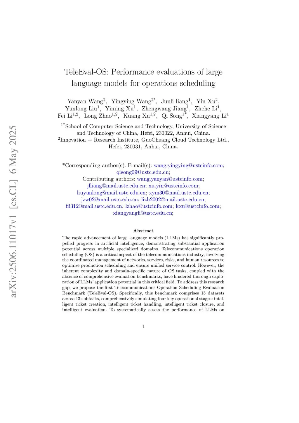 TeleEval-OS: Performance evaluations of large language models for operations scheduling