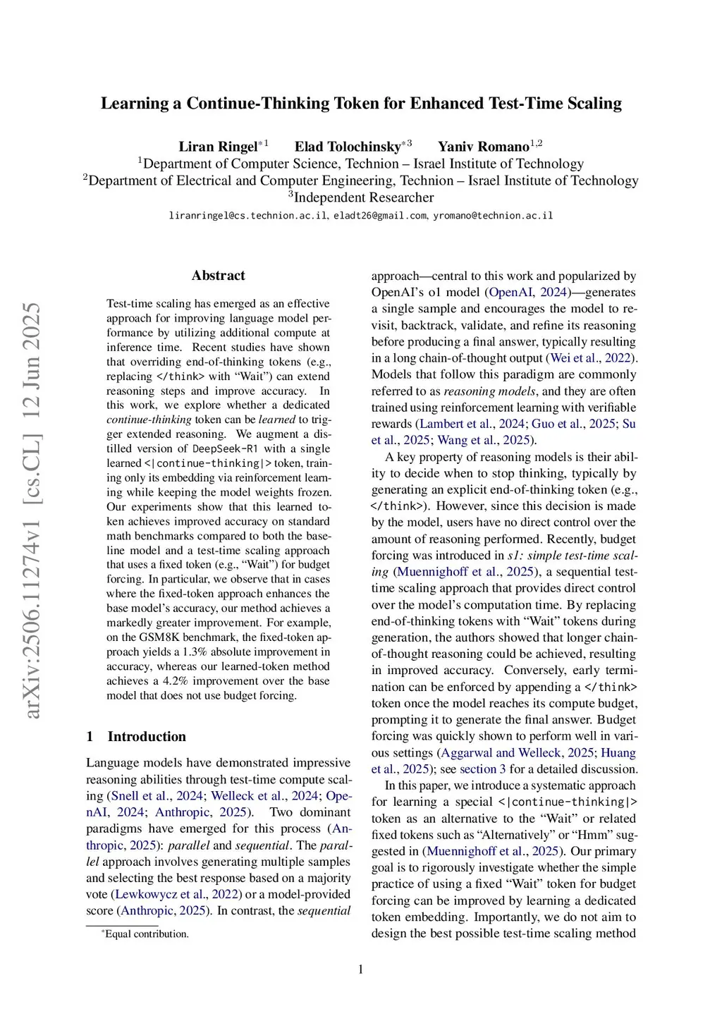 Learning a Continue-Thinking Token for Enhanced Test-Time Scaling