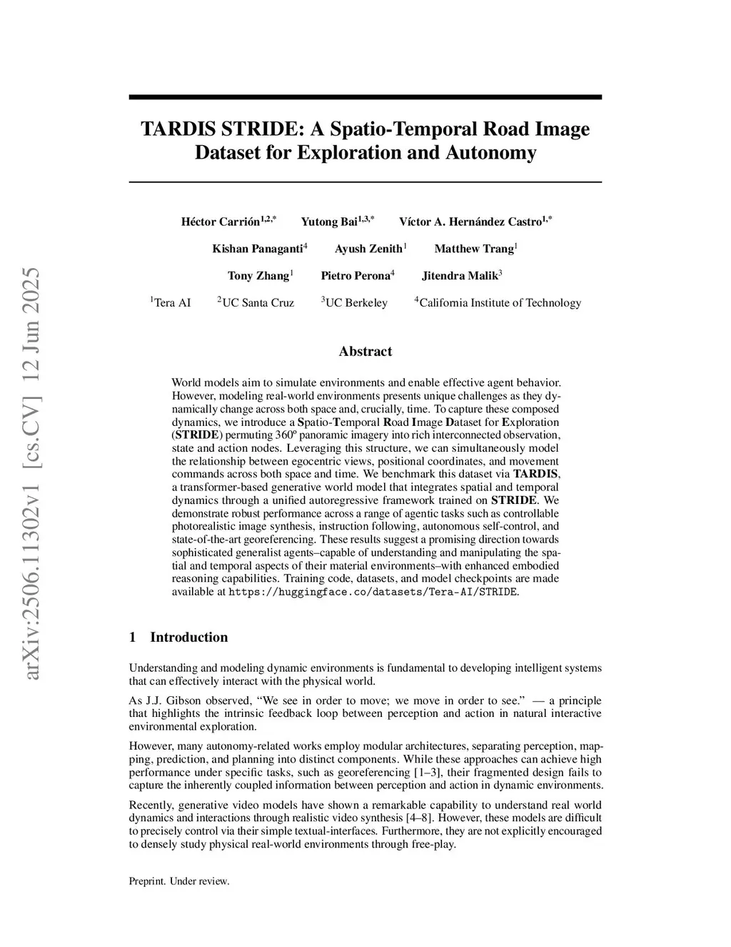 TARDIS STRIDE: A Spatio-Temporal Road Image Dataset for Exploration and Autonomy