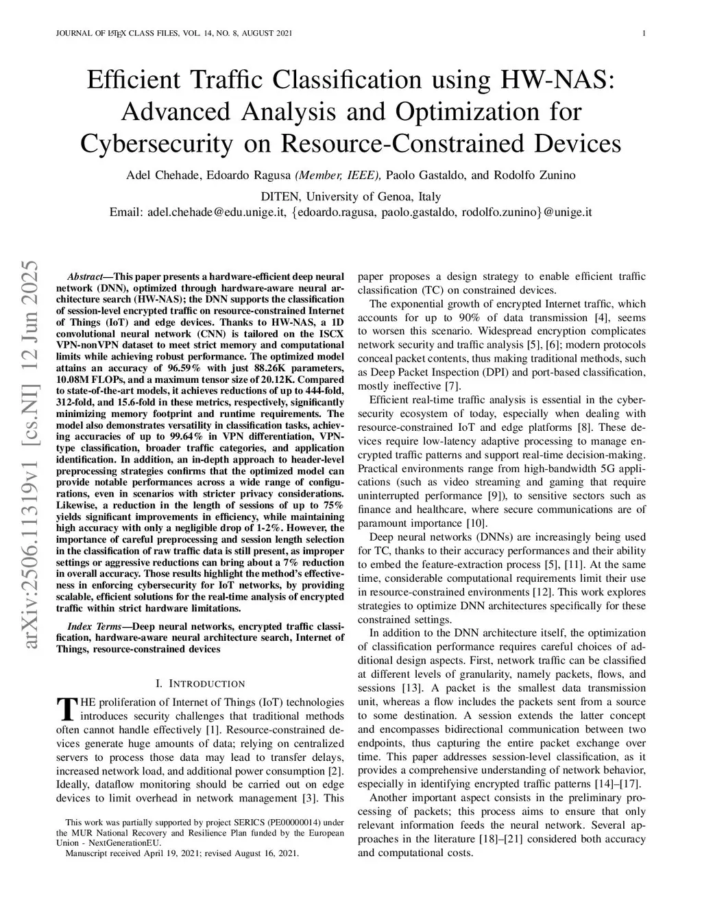 Efficient Traffic Classification using HW-NAS: Advanced Analysis and Optimization for Cybersecurity on Resource-Constrained Devices