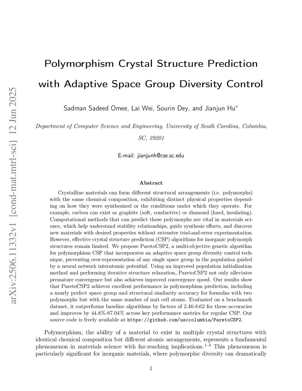 Crystalline materials can form different structural arrangements (i.e. polymorphs) with the same chemical composition, exhibiting distinct physical properties depending on how they were synthesized or the conditions under which they operate. For example, carbon can exist as graphite (soft, conductive) or diamond (hard, insulating). Computational methods that can predict these polymorphs are vital in materials science, which help understand stability relationships, guide synthesis efforts, and discover new materials with desired properties without extensive trial-and-error experimentation. However, effective crystal structure prediction (CSP) algorithms for inorganic polymorph structures remain limited. We propose ParetoCSP2, a multi-objective genetic algorithm for polymorphism CSP that incorporates an adaptive space group diversity control technique, preventing over-representation of any single space group in the population guided by a neural network interatomic potential. Using an improved population initialization method and performing iterative structure relaxation, ParetoCSP2 not only alleviates premature convergence but also achieves improved convergence speed. Our results show that ParetoCSP2 achieves excellent performance in polymorphism prediction, including a nearly perfect space group and structural similarity accuracy for formulas with two polymorphs but with the same number of unit cell atoms. Evaluated on a benchmark dataset, it outperforms baseline algorithms by factors of 2.46-8.62 for these accuracies and improves by 44.8\%-87.04\% across key performance metrics for regular CSP. Our source code is freely available atthis https URL.