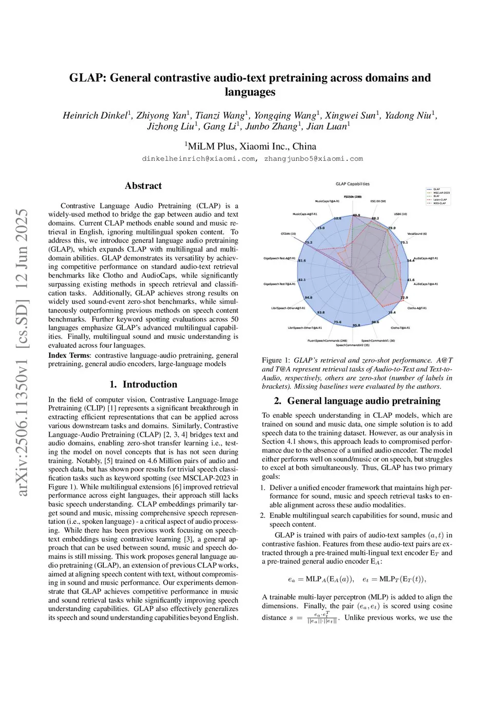 GLAP: General contrastive audio-text pretraining across domains and languages
