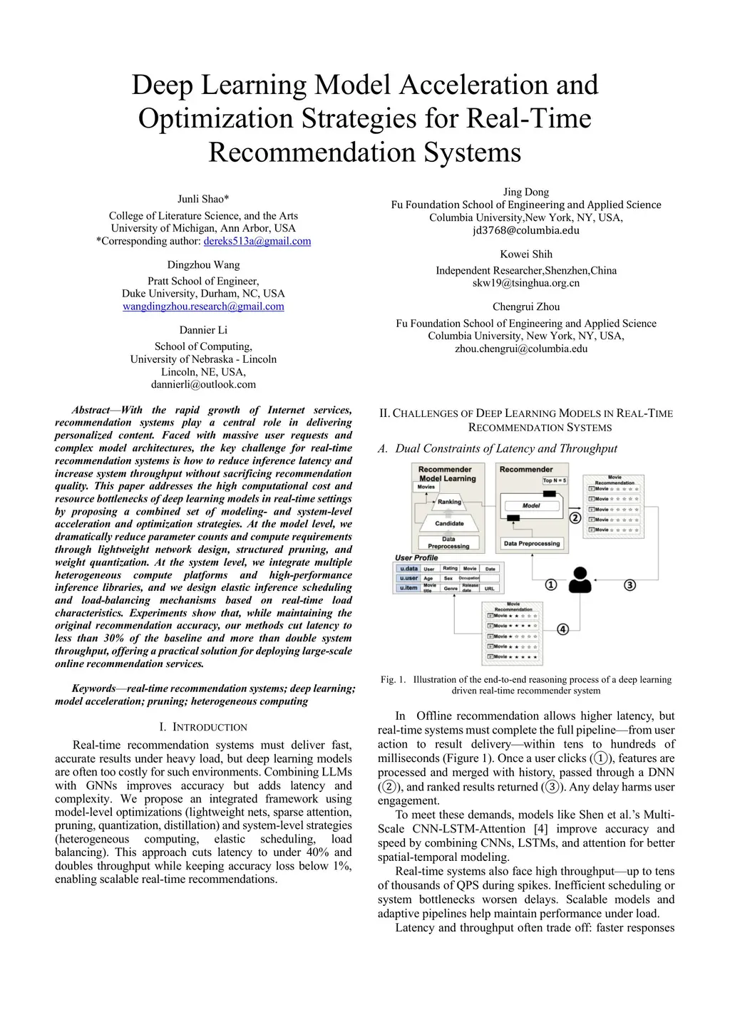 Deep Learning Model Acceleration and Optimization Strategies for Real-Time Recommendation Systems