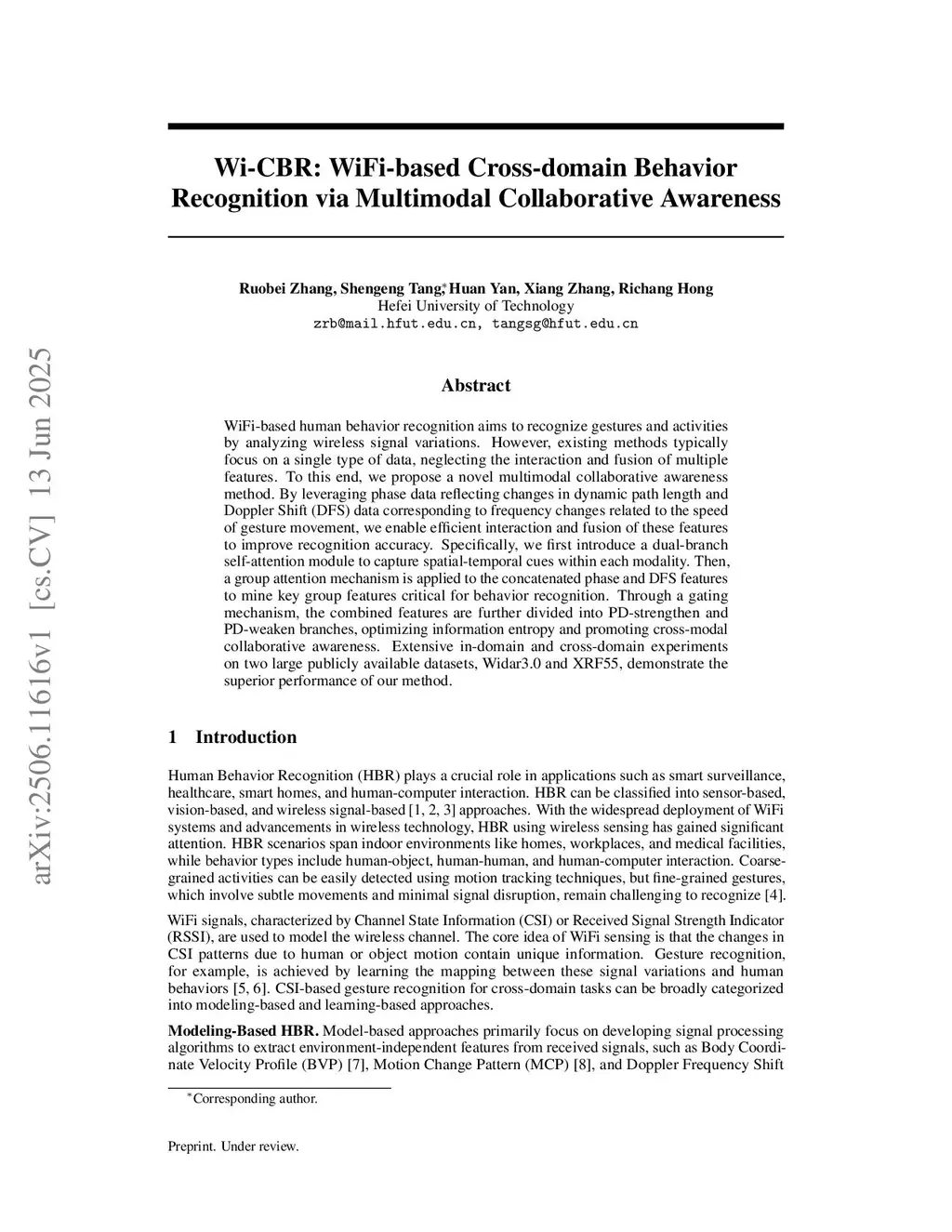 The challenge in WiFi-based cross-domain Behavior Recognition lies in the significant interference of domain-specific signals on gesture variation. However, previous methods alleviate this interference by mapping the phase from multiple domains into a common feature space. If the Doppler Frequency Shift (DFS) signal is used to dynamically supplement the phase features to achieve better generalization, it enables the model to not only explore a wider feature space but also to avoid potential degradation of gesture semantic information. Specifically, we propose a novel Salient-aware Adaptive WiFi Sensing for Cross-domain Behavior Recognition (Wi-CBR), which constructs a dual-branch self-attention module that captures temporal features from phase information reflecting dynamic path length variations while extracting kinematic features from DFS correlated with motion velocity. Moreover, we design a Saliency Guidance Module that employs group attention mechanisms to mine critical activity features and utilizes gating mechanisms to optimize information entropy, facilitating feature fusion and enabling effective interaction between salient and non-salient behavioral characteristics. Extensive experiments on two large-scale public datasets (Widar3.0 and XRF55) demonstrate the superior performance of our method in both in-domain and cross-domain scenarios.