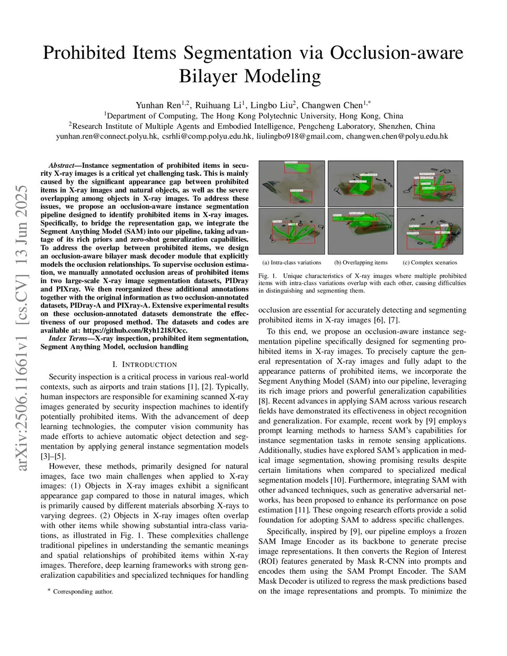 Prohibited Items Segmentation via Occlusion-aware Bilayer Modeling