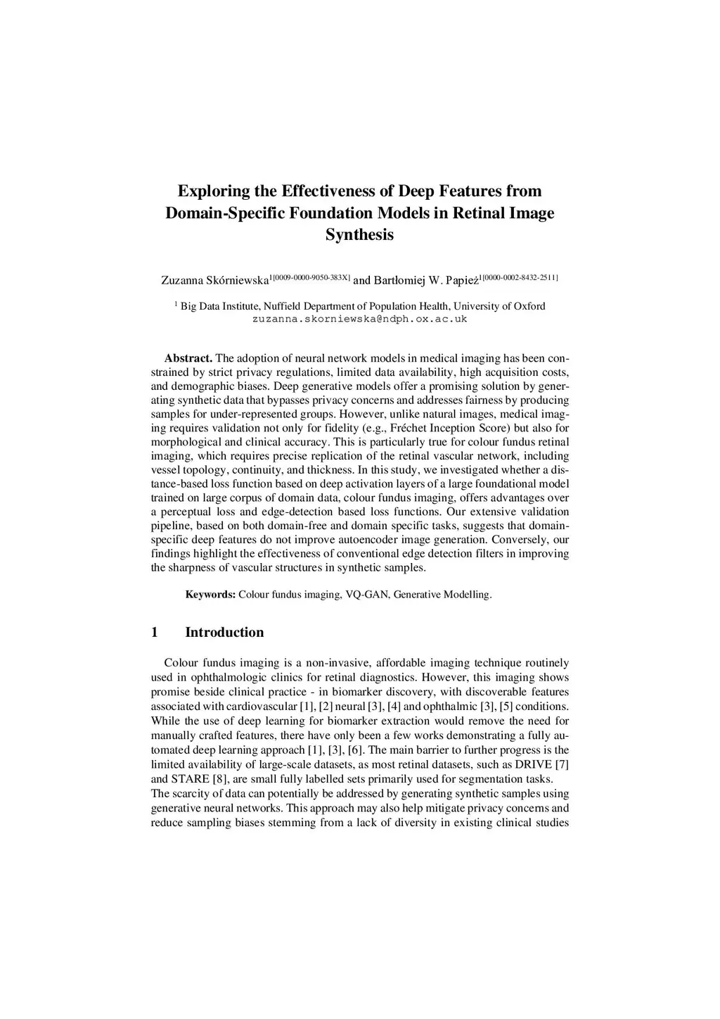 The adoption of neural network models in medical imaging has been constrained by strict privacy regulations, limited data availability, high acquisition costs, and demographic biases. Deep generative models offer a promising solution by generating synthetic data that bypasses privacy concerns and addresses fairness by producing samples for under-represented groups. However, unlike natural images, medical imaging requires validation not only for fidelity (e.g., Fréchet Inception Score) but also for morphological and clinical accuracy. This is particularly true for colour fundus retinal imaging, which requires precise replication of the retinal vascular network, including vessel topology, continuity, and thickness. In this study, we in-vestigated whether a distance-based loss function based on deep activation layers of a large foundational model trained on large corpus of domain data, colour fundus imaging, offers advantages over a perceptual loss and edge-detection based loss functions. Our extensive validation pipeline, based on both domain-free and domain specific tasks, suggests that domain-specific deep features do not improve autoen-coder image generation. Conversely, our findings highlight the effectiveness of con-ventional edge detection filters in improving the sharpness of vascular structures in synthetic samples.