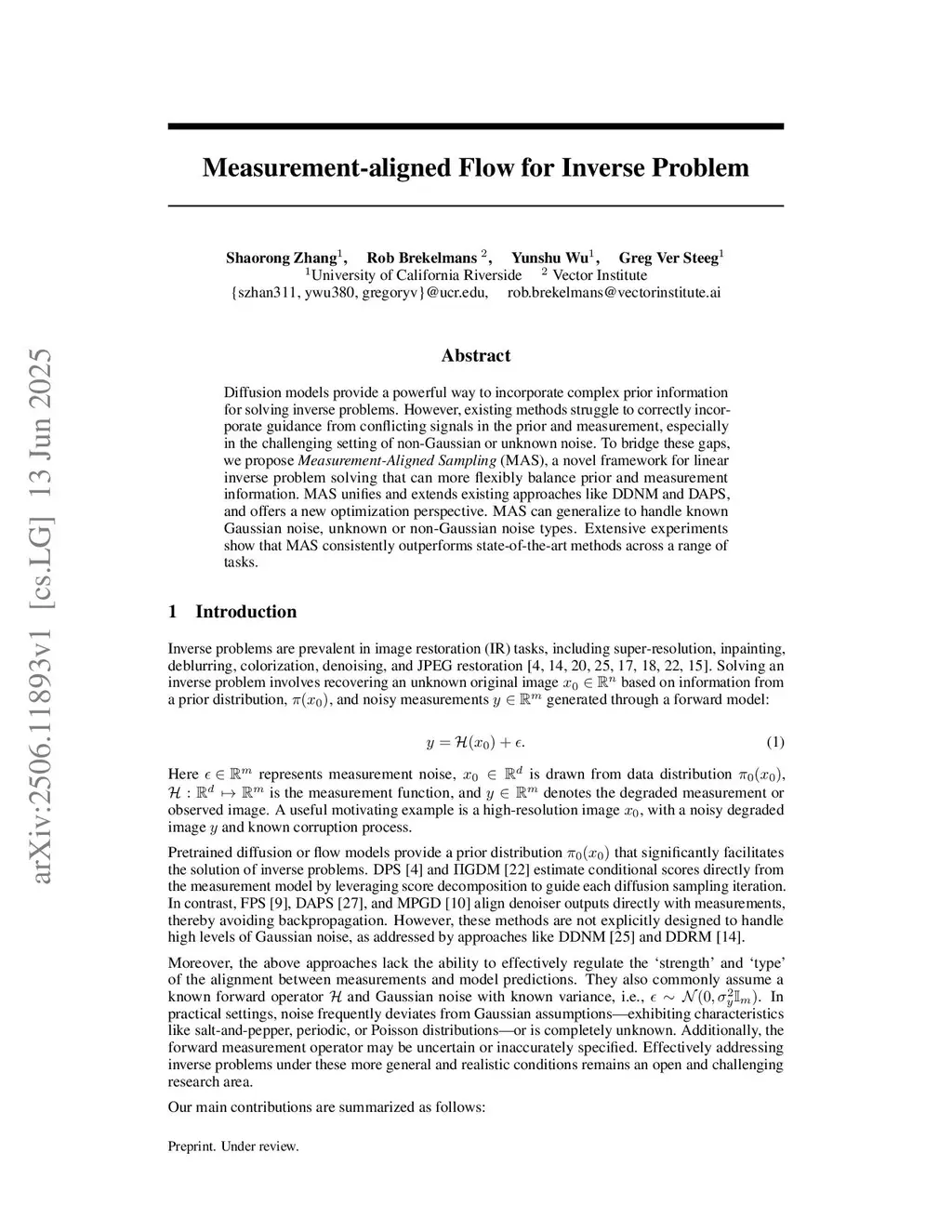 Diffusion models provide a powerful way to incorporate complex prior information for solving inverse problems. However, existing methods struggle to correctly incorporate guidance from conflicting signals in the prior and measurement, and often failed to maximizing the consistency to the measurement, especially in the challenging setting of non-Gaussian or unknown noise. To address these issues, we propose Measurement-Aligned Sampling (MAS), a novel framework for linear inverse problem solving that flexibly balances prior and measurement information. MAS unifies and extends existing approaches such as DDNM, TMPD, while generalizing to handle both known Gaussian noise and unknown or non-Gaussian noise types. Extensive experiments demonstrate that MAS consistently outperforms state-of-the-art methods across a variety of tasks, while maintaining relatively low computational cost.