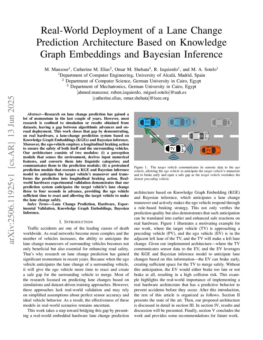 Real-World Deployment of a Lane Change Prediction Architecture Based on Knowledge Graph Embeddings and Bayesian Inference